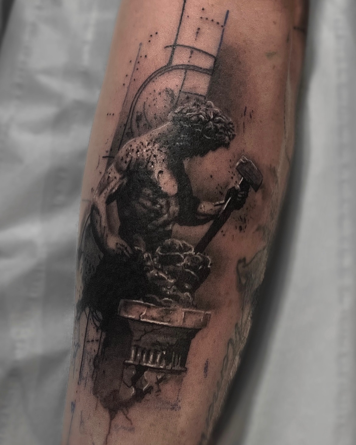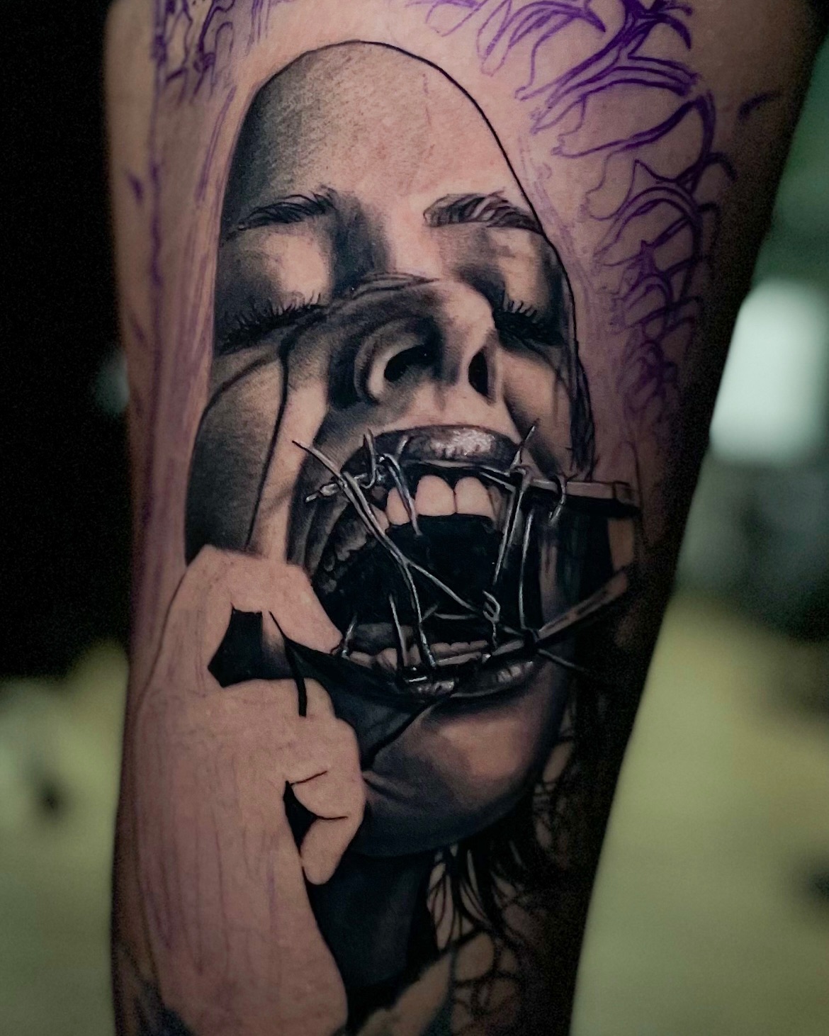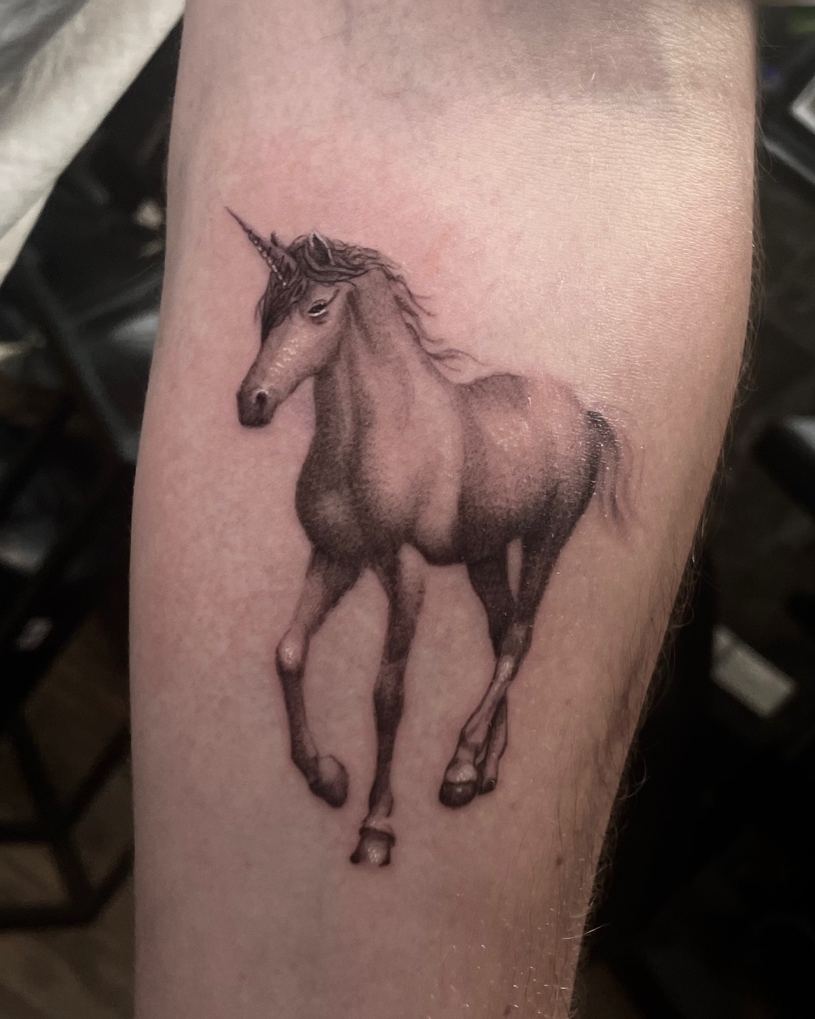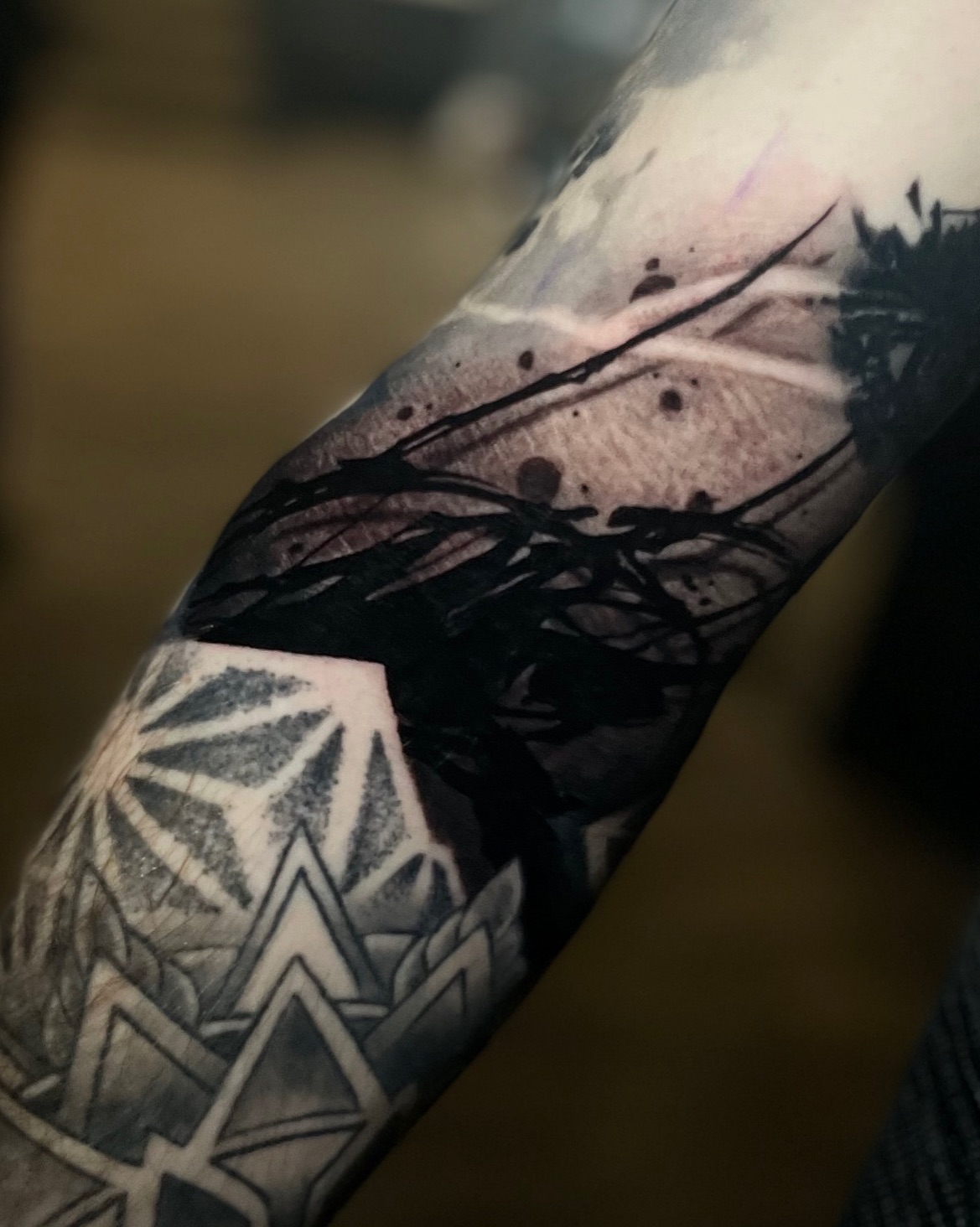Say hello to Nathan, our dark abstract realism specialist with a brain as sharp as his needle. His unique technique and dry sense of humour keep things clever and quietly brilliant in the studio. He’s flying through his progress with serious speed — just scroll through his gallery to see the magic in motion. Quietly intense, endlessly curious, and always a step ahead.